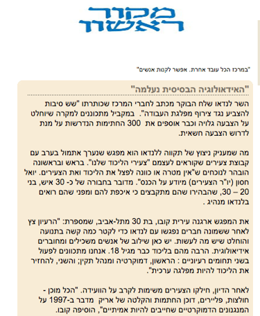 ניהלתי את אזור המרכז במטה הצעירים נגד תוכנית ההתנדקות